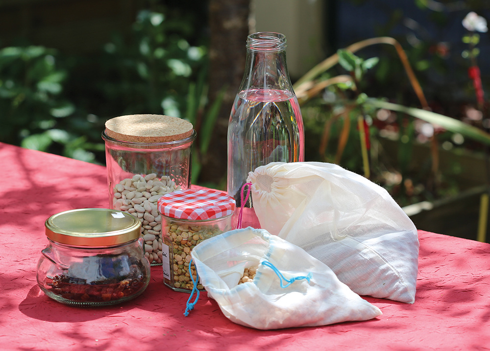 Prenez l’habitude de prendre quelques sacs à vrac que vous pouvez acheter ou fabriquer vous-même. A la maison, il suffit d’investir dans l’achat de quelques bocaux ou d’utiliser des bocaux de récupération pour conserver vos pâtes, riz et semoule…